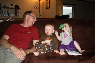 Grandma and Grandpa Krahn came for a short visit today, the kids got to see them in the morning, however when they were finished butchering chickens the kids were going down for naps. I think I heard them come to say hi and goodbye, however I was almost had Kenzie asleep and moving from the rocking chair would have spelled disaster and a nap was very much so needed for the kids since they have had way to many late nights and got up earlier than normal this morning. For me if I stay up to late then I want to sleep in, with the kids nope. If they stay up late then they want to get up early. Go figure! However one very sweet thing that happened when Grandma K. was here - Jaris saw her and walked right on over to her very excited to she his grandma! It was very sweet and he I am pretty sure that was the most steps in a row he has taken to date!